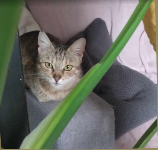 C’est une adorable minette sortie de fourrière qui aime les câlins.